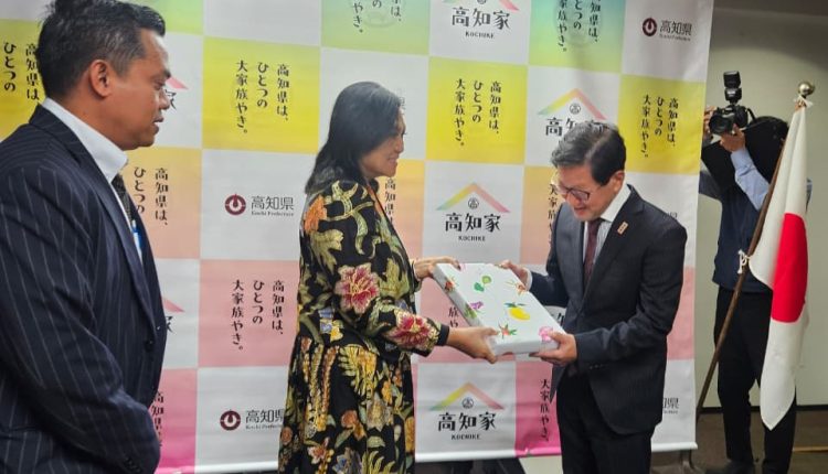 Sulutnetwork.com – Ketua TP-PKK Sulawesi Utara (Sulut) Anik Yulius Selvanus bersama sejumlah pejabat Pemprov Sulut disambut resmi oleh Gubernur Kochi, Hamada Seiji, di Kantor Gubernur Kochi, Selasa, 2 Desember 2025.
