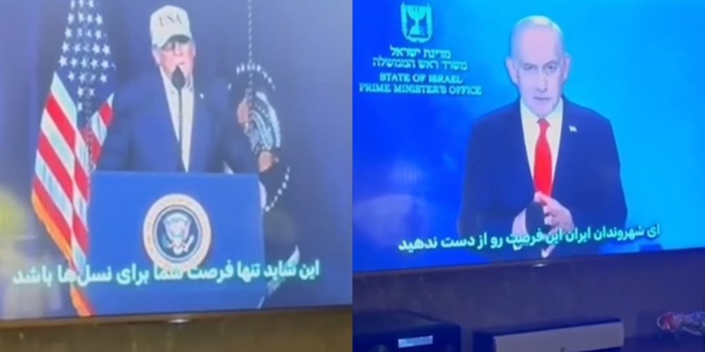“Trump dan Netanyahu terlihat berbicara kepada warga Iran, disertai pesan yang mendesak mereka untuk “merebut kendali atas nasib sendiri” dan bangkit melawan rezim yang berkuasa di Teheran,” demikian tertulis dalam laporan tersebut.