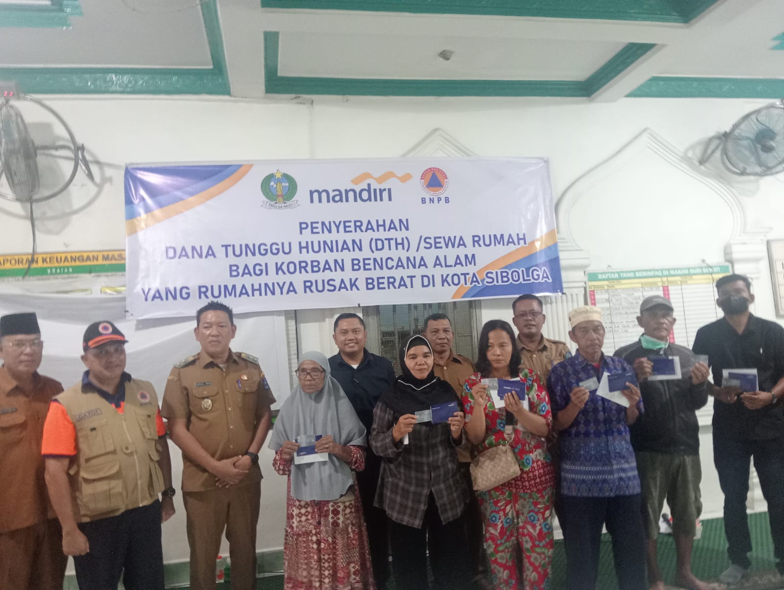 Penyerahan Dana Tunggu Hunian di Kota Sibolga dilaksanakan pada Selasa, 30 Desember 2025, bertempat di Masjid Budi Sehati yang menjadi lokasi pengungsian warga di Kelurahan Pancuran Gerobak, Kecamatan Sibolga Kota. Sebanyak 31 kepala keluarga (KK) dari Kelurahan Pancuran Gerobak, Pasar Baru, dan Kota Baringin menerima DTH secara simbolis yang diserahkan oleh Wakil Wali Kota Sibolga.