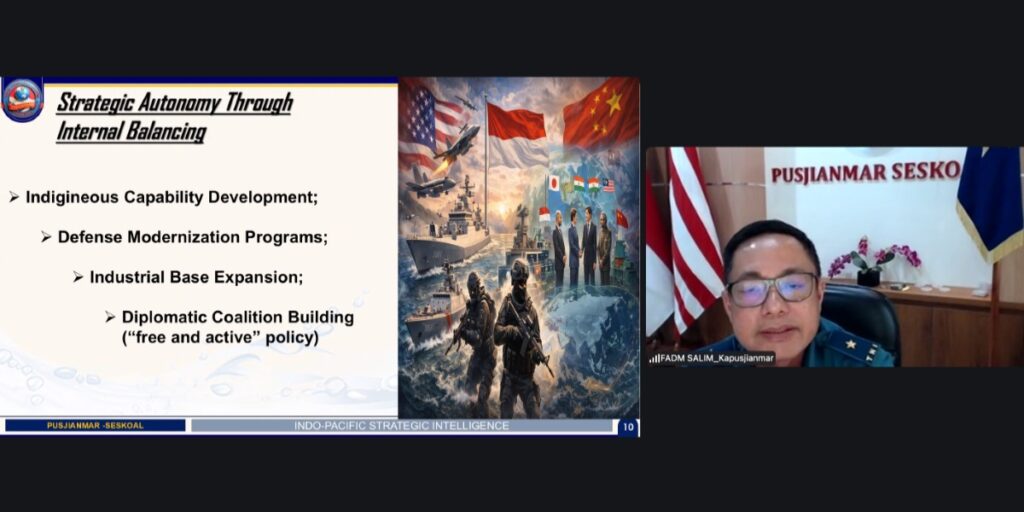 “Indonesia harus mencegah keterjebakan dalam rivalitas kekuatan besar, sambil tetap berperan sebagai aktor kunci dalam menjaga stabilitas kawasan dan tatanan berbasis hukum, khususnya di sektor maritim,” ujar Salim.