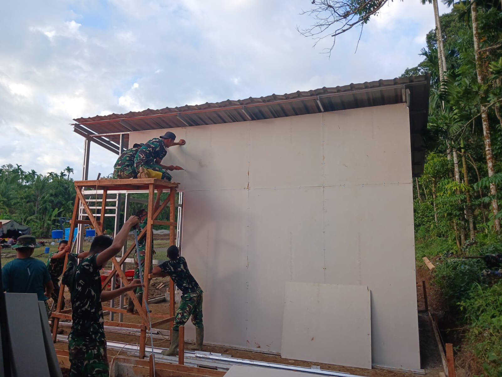 Huntara ini memiliki kapasitas 117 kepala keluarga (KK) dalam 24 barak, dengan target penyelesaian pada 2 Januari 2026. Hingga kini, progres pembangunan baru mencapai 4 persen. Pembangunan melibatkan personel gabungan TNI, BPBD, Dinas PUPR Agam, dan BNPB, dengan dukungan alat berat.